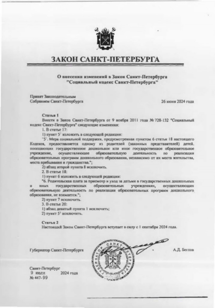 3. Заявление о невзимании родительской платы за присмотр и уход за детьми в государственном образовательном учреждении, реализующем образовательные программы дошкольного образования, компенсации части родительской платы за присмотр и уход за ребенком в ОО
